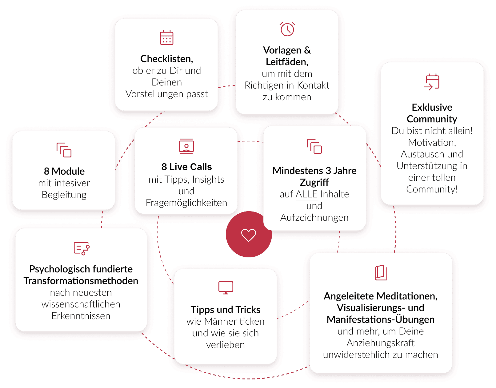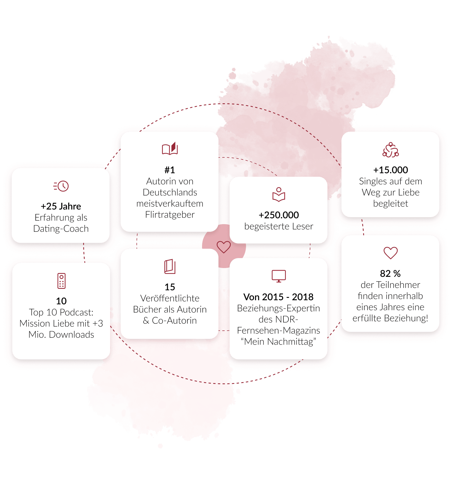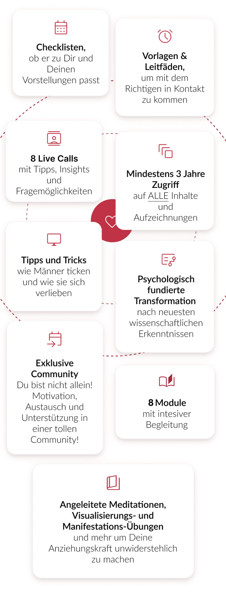 Ich habe bereits über 15.000 Singles zur Liebe begleitet und durch die Rückmeldungen der bisherigen Teilnehmerinnen weiß ich, dass mein Programm und die darin enthaltenen Methoden funktionieren…