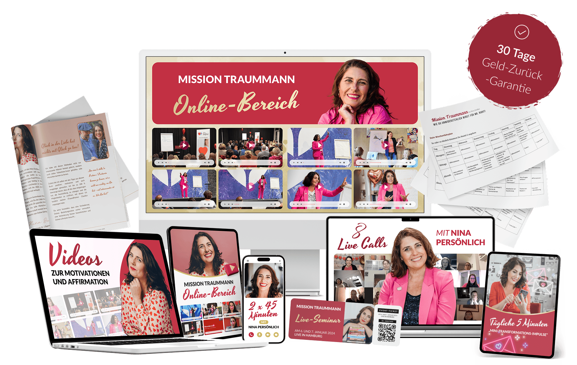 Melde Dich deshalb heute risikofrei an und probiere alles aus, lade die Inhalte runter und nutze meine Vorlagen und Checklisten. Wenn Du nach 30 Tagen nicht überzeugt bist, dass das Programm perfekt für Dich ist, dann schreibe mir eine Mail an: info@ninadeissler.de und ich erstatte Dir den vollen Kaufbetrag zurück.